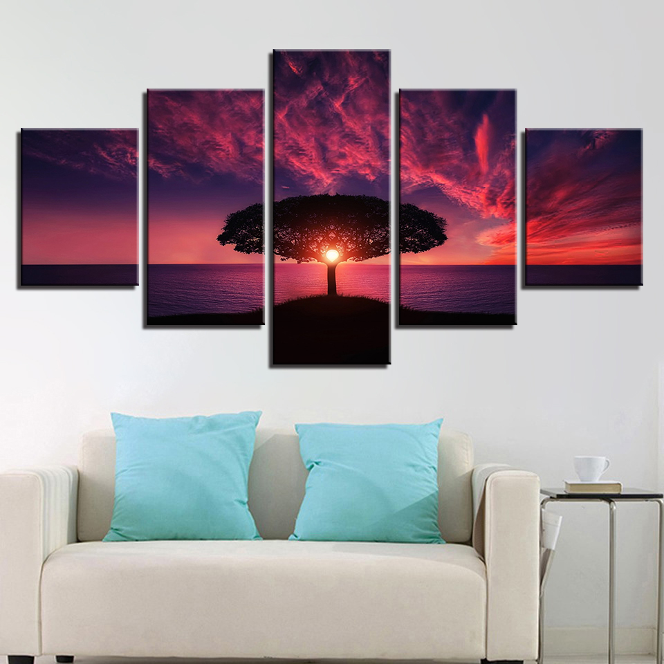 Not Applicable Wandbild Modulare Bilder Fur Wohnzimmer Wandkunst Leinwand Malerei Dekor 5 Stuck Rote Baume Wald Landschaft Poster Hd Print Amazon De Kuche Haushalt