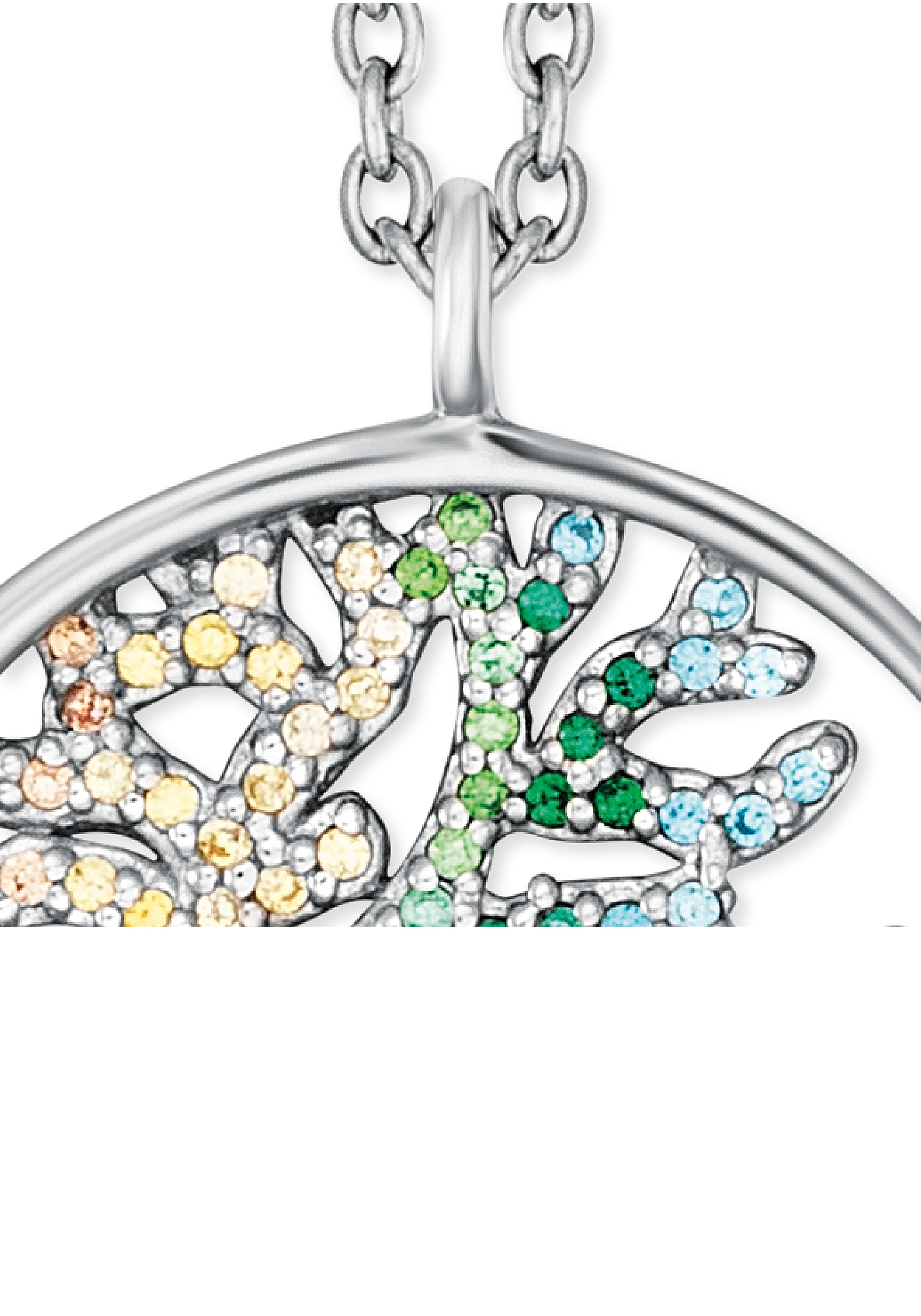 Kette Lebensbaum Silber Mit Zirkonia Multicolor