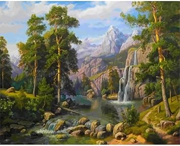 Qiaoyue Diy Olgemalde Berg Wasserfall Landschaft Malen Nach Zahlen Fur Erwachsene Und Kinder Malen Wohnzimmer Schlafzimmer Kuche Dekoration Leinwand 40x50cm Rahmenlos Amazon De Spielzeug