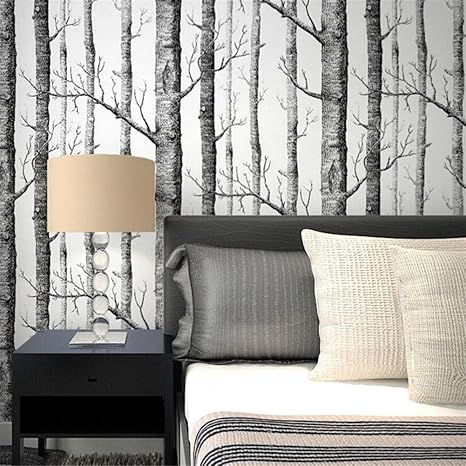 Wallpaper Roll Wallpaper Dekor Abstrakt Schwarz Und Weiss Zweige Vliestapete Baumstamm Baum Birkenwald Wohnzimmer Tv Wandtapete 0 53 10m Amazon De Kuche Haushalt
