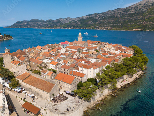 Insel Korcula Stadt In Dalmatien Kroatien Luftaufnahme Mit Bergen Und Meer Im Hintergrund Buy This Stock Photo And Explore Similar Images At Adobe Stock Adobe Stock