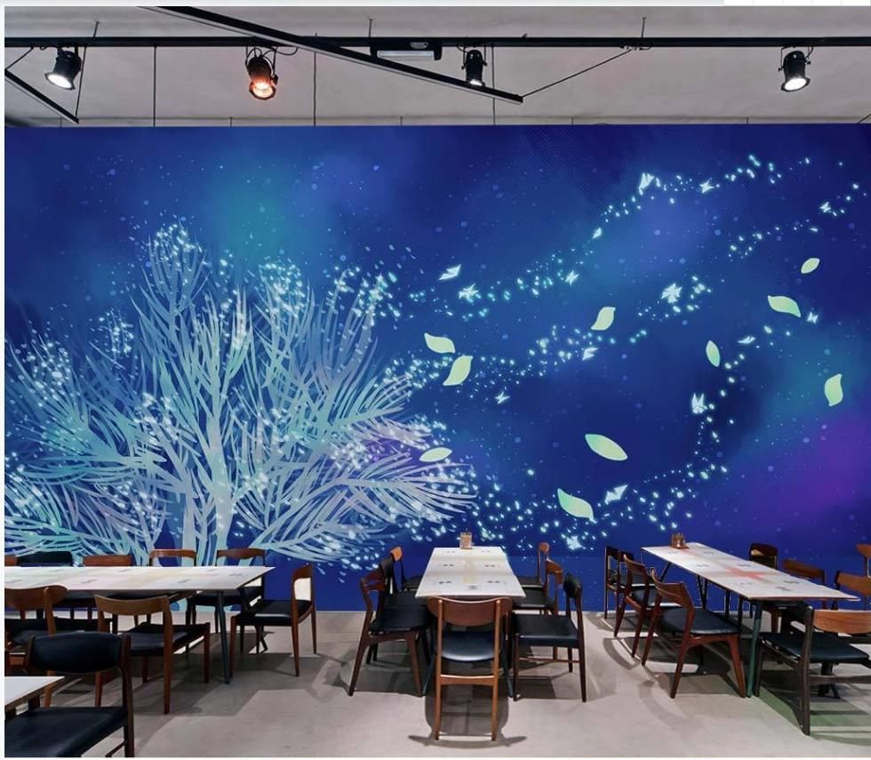 Grosshandel 3d Hintergrundbilder Kinderzimmer Restaurant Handgemaltes Gemalde Blau Wald Tapeten Restaurant Hintergrund Wanddekoration Von Wallpaper1688 9 99 Auf De Dhgate Com Dhgate