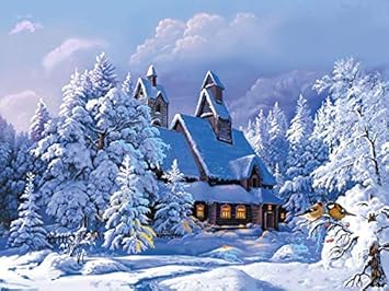 Amazon De Wincy Shop Eu Weihnachten Schneehaus Landschaft Diy Malen Nach Zahlen Rahmenloses Olgemalde Handgemalt Von Ihnen Schneehauser Holzrahmen