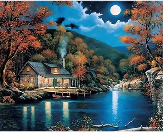 Cmhai Kein Rahmen Nacht Vollmond Landschaft Diy Digitale Malen Nach Zahlen Moderne Wandkunst Leinwand Malerei Weihnachten Einzigartiges Geschenk Wohnkultur Amazon De Kuche Haushalt