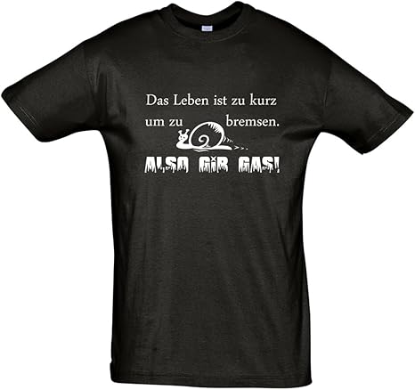 T Shirt Fun Shirt Das Leben Ist Zu Kurz Um Zu Bremsen Also Gib Gas Amazon De Bekleidung
